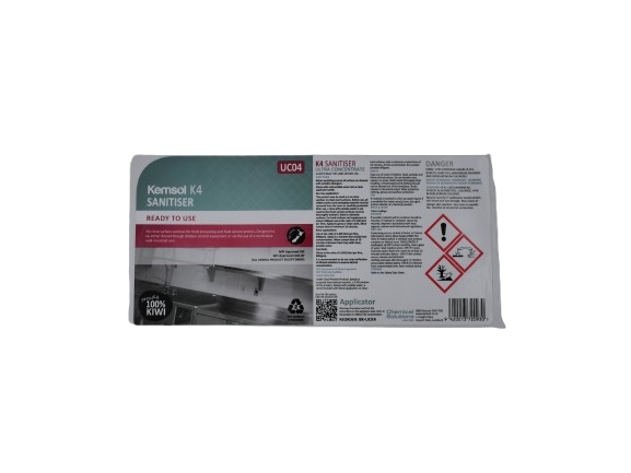 Replacement application label for Ultra-Concentrate K4 bottles. Can be used to replace old or missing labels and provides clear product and safety information for easy identification and compliance.
